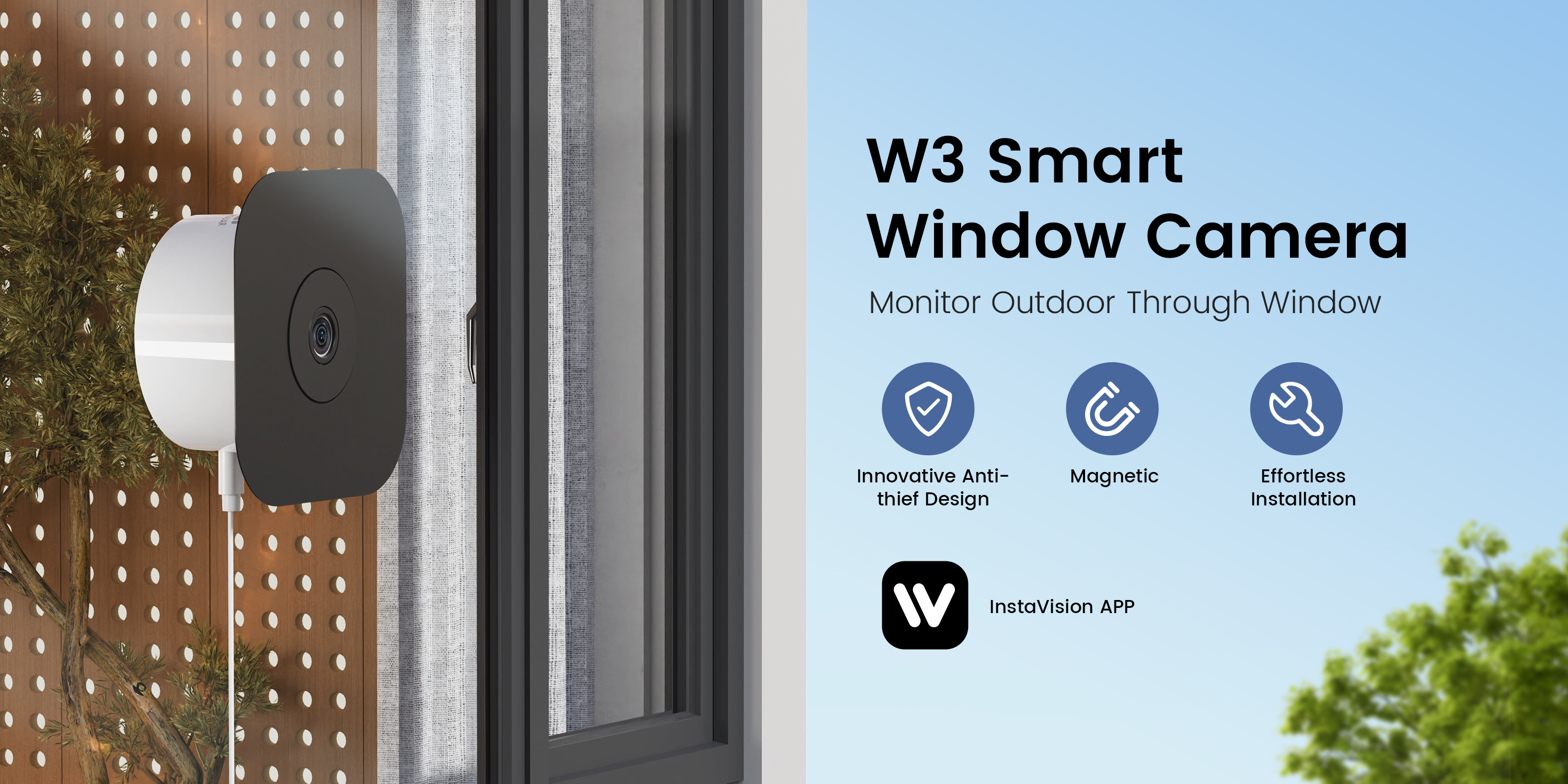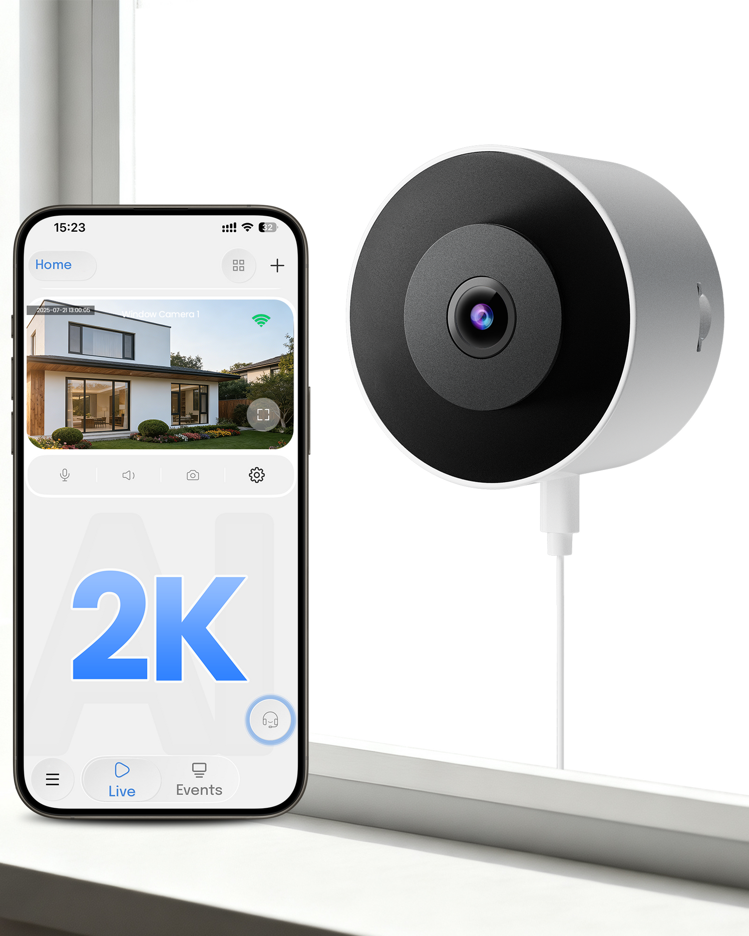 3MP 2K Window Camera, WiFi6 Indoor Camera for Home Security, with Full-Color Night Vision, AI Person/Vehicle/Motion Detection, 24/7 Recording, Easy & Quick Install, Replaces Outdoor Cameras