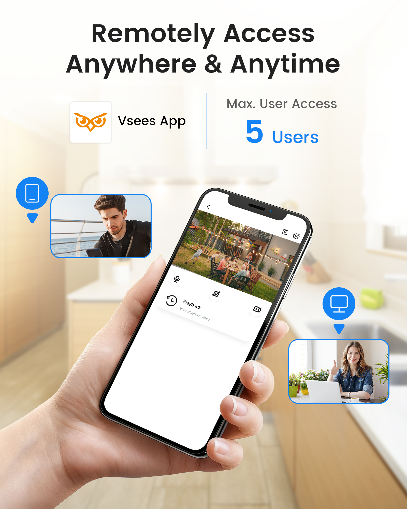 - đą ăRemote Viewing Anytime â Free VSees App for iOS & Androidă Check in on your property from your phone, tablet, or computer. Watch live or recorded video over Wi-Fi or cellular data. Simple, secure, and user-friendlyâideal for families and business owners.