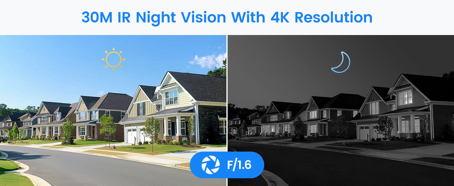 - 🎯 【4K Ultra HD & 100ft Night Vision – See Everything in Crystal Clear Detail】 Experience true 4K clarity with 8MP resolution—4x sharper than 1080p! This PoE camera delivers smooth 20fps video, day and night. With built-in IR LEDs, see up to 100ft even in total darkness. Perfect for monitoring homes, businesses, and outdoor spaces with confidence.