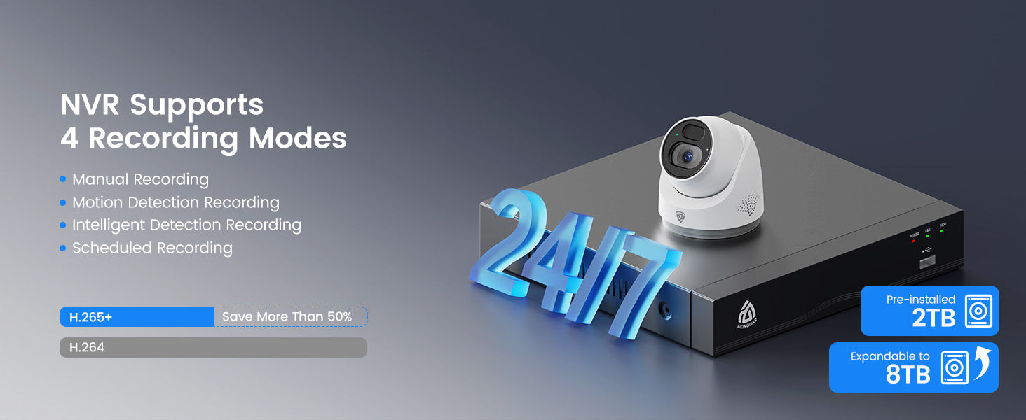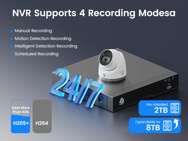 - 💾 【24/7 Recording – Pre-Installed 2TB HDD, Expandable to 8TB】Never miss a moment with continuous recording. The NVR comes with a 2TB hard drive (supports up to 8TB) and handles up to 8 cameras. Review footage anytime via the free VSees app—easy search, playback, and download.