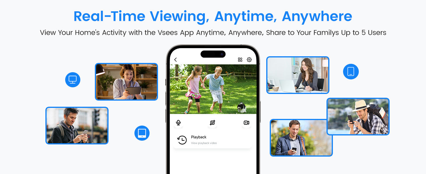 - 📱 【Remote Viewing Anytime – Free VSees App for iOS & Android】 Check in on your property from your phone, tablet, or computer. Watch live or recorded video over Wi-Fi or cellular data. Simple, secure, and user-friendly—ideal for families and business owners.