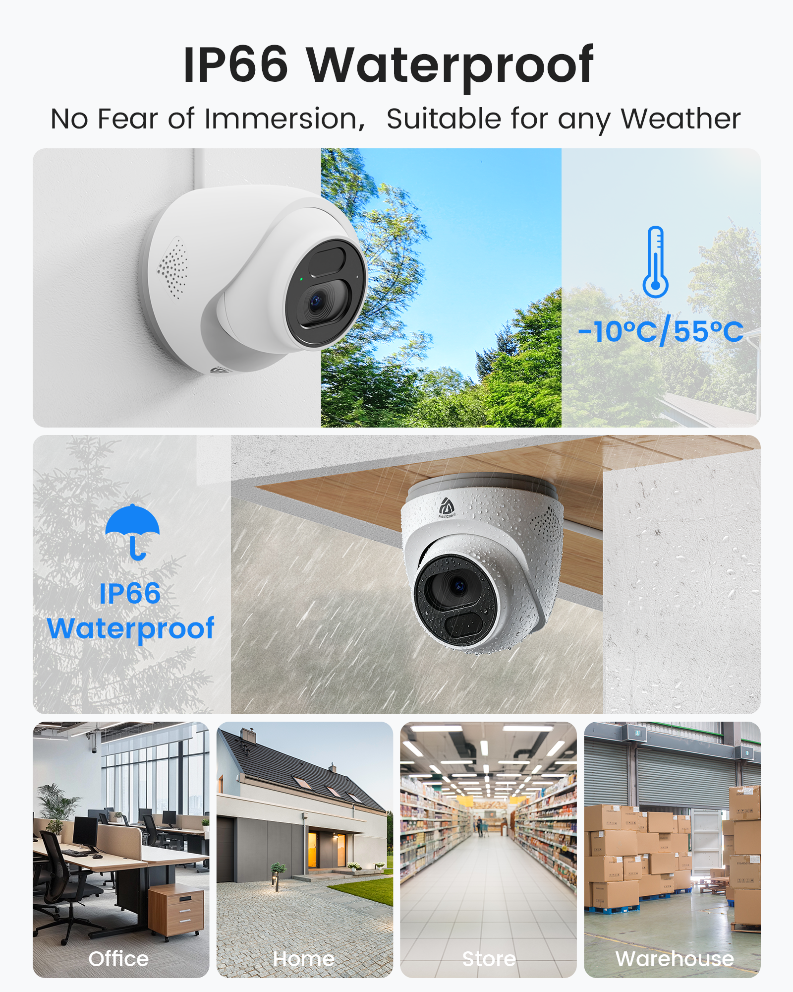 - đ§ď¸ ăWeatherproof & Durable â IP66 Rated for Indoor/Outdoor Useă Built tough with metal housing and IP66 waterproof rating. Withstands rain, snow, and heat. The adjustable mount offers flexible positioning (manual adjustment onlyâno remote PTZ).