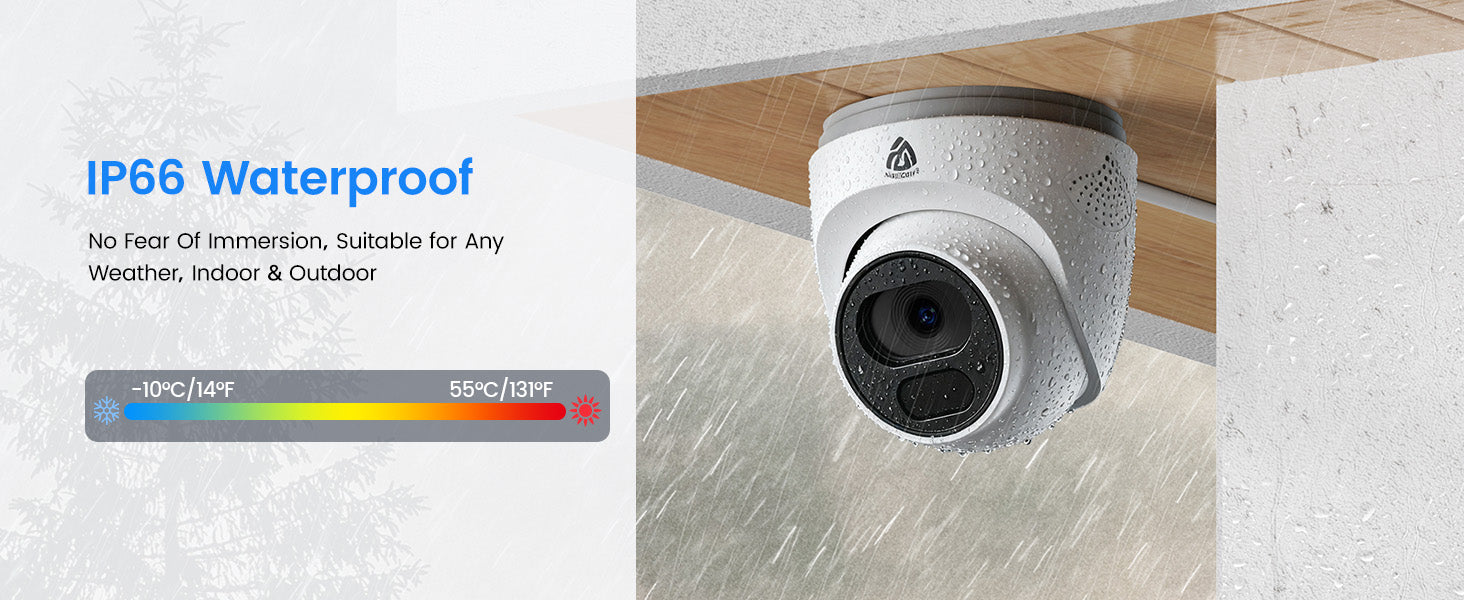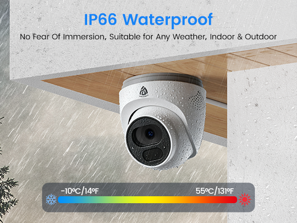 - 🌧️ 【Weatherproof & Durable – IP66 Rated for Indoor/Outdoor Use】 Built tough with metal housing and IP66 waterproof rating. Withstands rain, snow, and heat. The adjustable mount offers flexible positioning (manual adjustment only—no remote PTZ).