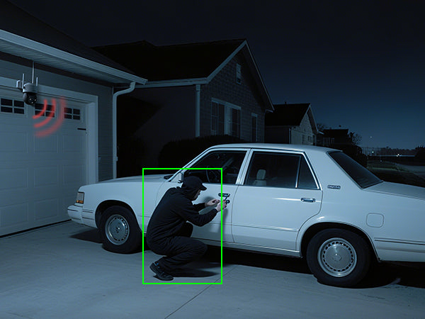 Deter unwanted visitors instantly with built-in motion-activated loud siren.