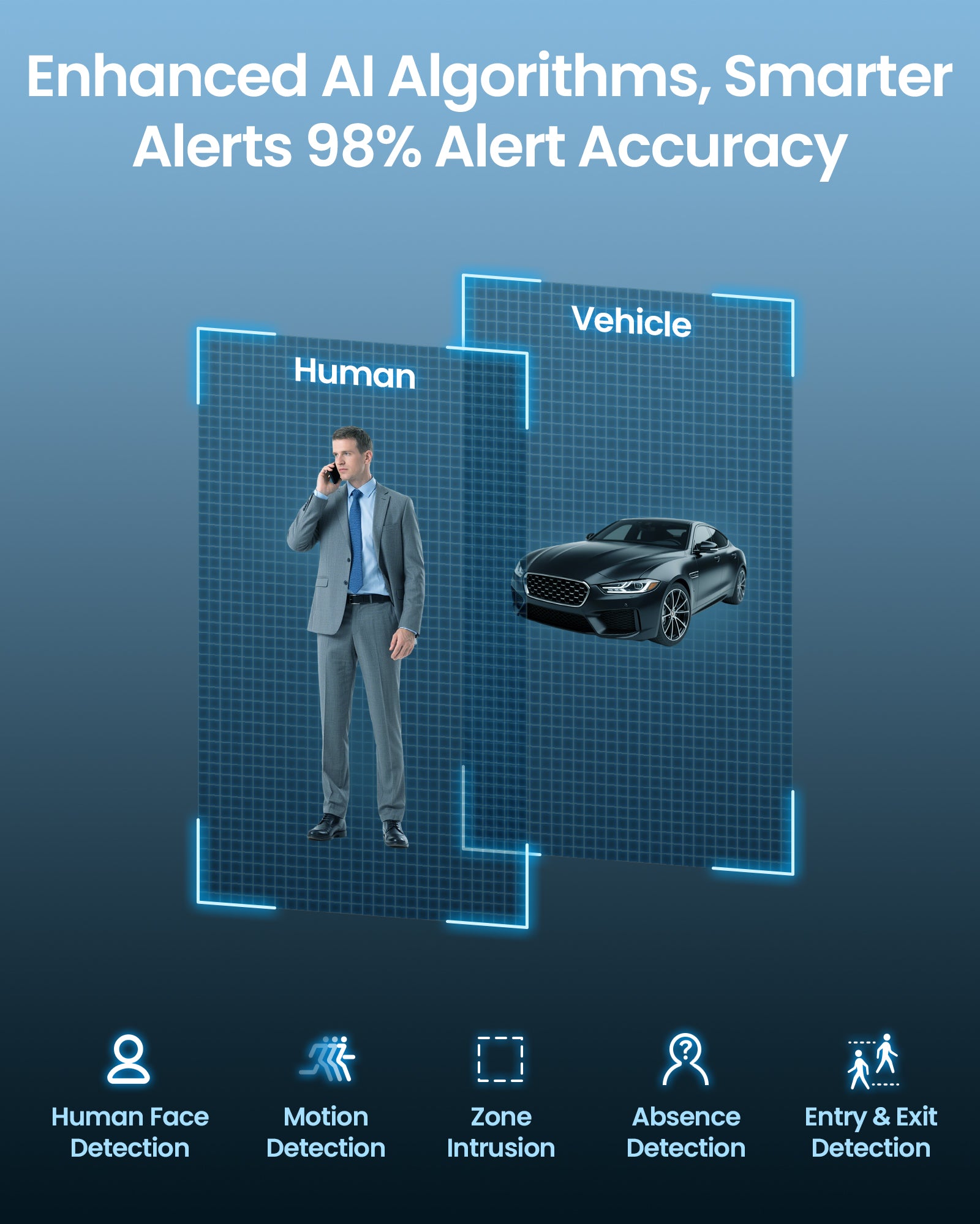 It supports automatic human tracking, can accurately recognize humans, vehicles, and faces.